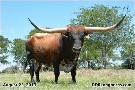 Dam is a HSC winner (FL Rio Maxine) and his sire is DH Red Ranger. He has won 3 bronzes himself. He has color, conformation and serious horn coming on. Check out his beautiful offspring. Semen is available for just $25/straw.